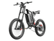 The bike rides on 19″ × 2.75″ mountain-bike style tires, offering excellent grip and control on dirt, gravel, or mixed terrain.