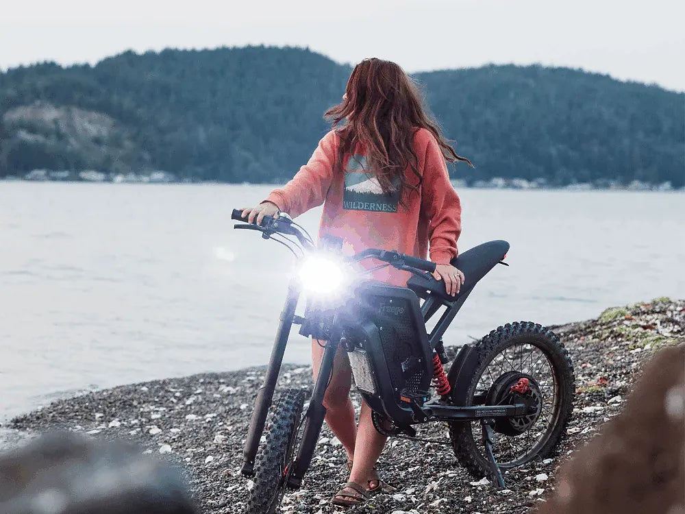 Switch easily between City mode (up to 28 mph) for legal street use and an unlocked Off-Road mode where the bike can reach up to 50 mph for trail or dirt-bike-style riding.