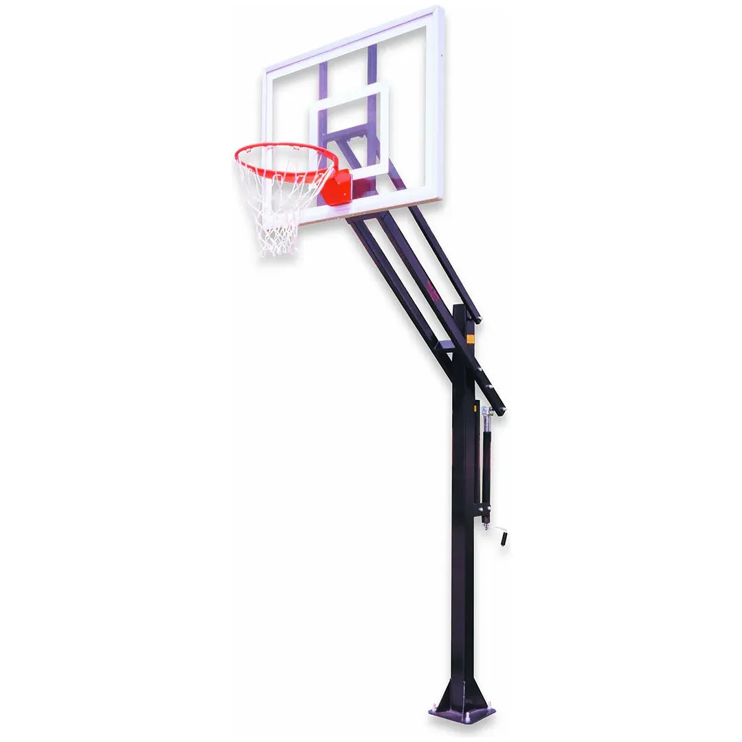 The First Team Attack In Ground Adjustable Basketball Goal is a professional‑grade in‑ground adjustable hoop system engineered for infinite height adjustability, rugged durability, and dependable performance. With its EZ‑Crank adjustment and Spring Assist mechanism, the Attack delivers smooth, effortless rim height changes and rock‑solid playability ideal for home courts, parks, and recreational facilities.