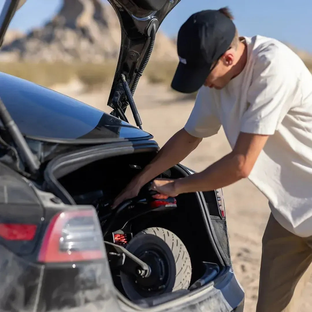 The Kaabo Warrior 11 Pro+ is a premium all-terrain electric scooter built for riders who demand extreme power, long-range performance, and rugged stability. Equipped with dual 1200W motors, a massive 60V 35Ah battery, and advanced suspension, it delivers explosive acceleration, a top speed of up to 50 mph, and impressive off-road capability. Whether you're navigating city streets or conquering dirt trails, the Warrior 11 Pro+ provides uncompromising strength, endurance, and control.