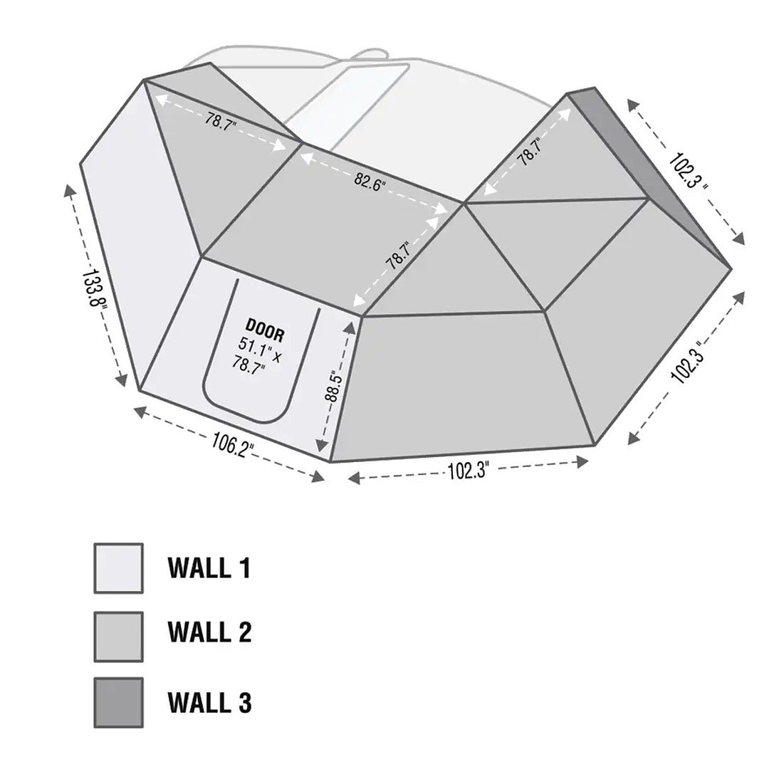 The included wall kit adds additional privacy, wind protection, and enhanced shade, making it ideal for camping, overlanding, or outdoor gatherings. Walls are easy to attach and remove, allowing flexible setup depending on your environment.