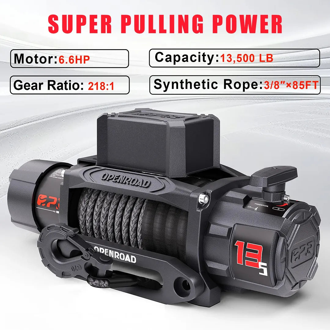 OPENROAD Panther Series 3S Electric Winch – 13,500 lb Capacity with Synthetic Rope