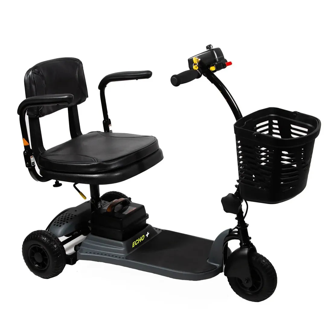 Designed with a comfortable swivel seat and curved tiller for added legroom, the ECHO + ensures a user-friendly ride whether you’re indoors or out. The three-wheel configuration and tight turning radius make maneuvering through doorways, hallways, and crowded areas effortless.